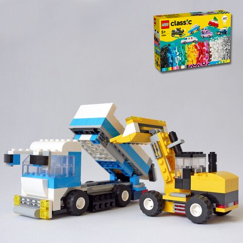 1つのレゴクラシック11036「のりものをつくろう」だけを使って作れるフロントローダーとダンプカーセットの説明書です。フロントローダーはアーム、ショベルが別々に可動出来るので、地面の土砂をすくいトラックの荷台に積み上げる事が出来ます。もちろんダ…